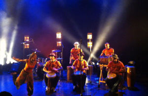 Le groupe est composé de djembés, dun dun, congas, de quelques chanteurs et deux danseuses. Un p’tit groupe sympa pour une méga ambiance.